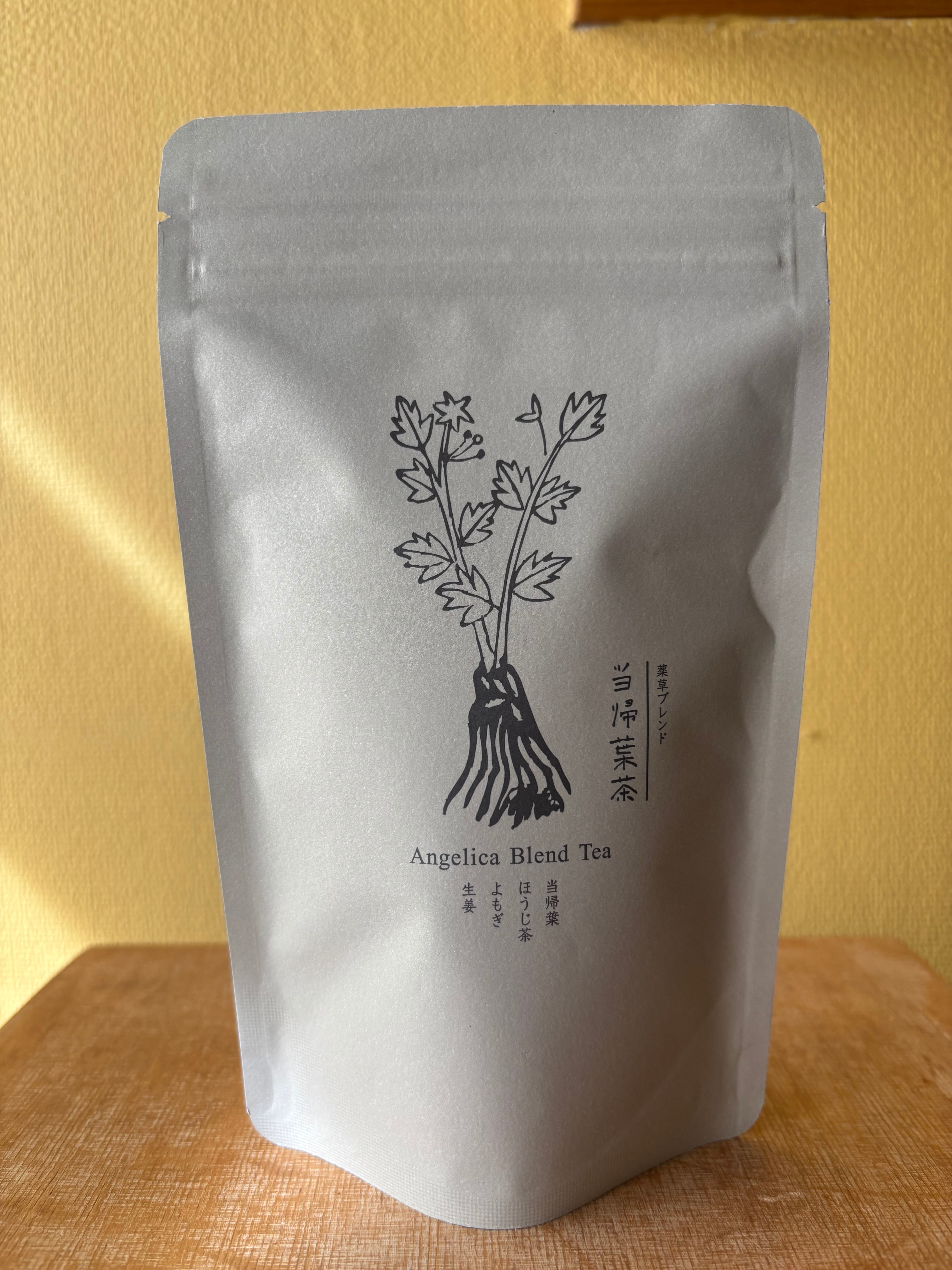 当帰葉に生姜、よもぎ、ほうじ茶をブレンドしました。当帰葉の香りと味をより引き立ててくれます。 当帰の葉は根と同様に血管拡張作用のあるアデノシンと言う成分を含みます。寒い日の朝や身体が冷えた時に身体も心も暖まります。